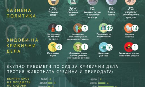In Еколошка правда, Мултимедија, Новости Објавено декември 31, 2025 Инфографик – кривични дела од областа на животната средина Овој инфографик обезбедува преглед на судската практика за кривични дела ПОВЕЌЕ